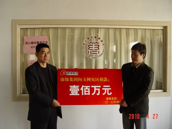 集团党委副书记刘民代表公司将100万元抗震救灾善款捐给市慈善总会