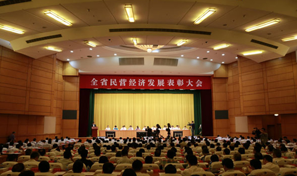 省委书记罗志军在会上作重要讲话。他首先向受到表彰的民营企业和民营企业家表示热烈祝贺,向全省广大民营经济人士表示诚挚敬意。他说,江苏经济正处在转型发展、爬坡过坎的重要关口。在这样的关键时刻,谋划和推进民营经济发展,既是顺应发展阶段变化、积极主动作为的重要之举,也是促进江苏经济持续健康发展、推进“两个率先”的战略之策。罗志军强调,要深入贯彻党的十八届三中全会和总书记系列重要讲话精神,以转型发展为导向,以全面深化改革为动力,加快推动政府转职能、企业转方式、社会转观念,充分激发民营经济活力和创造力,努力开创江苏民营经济发展新局面。