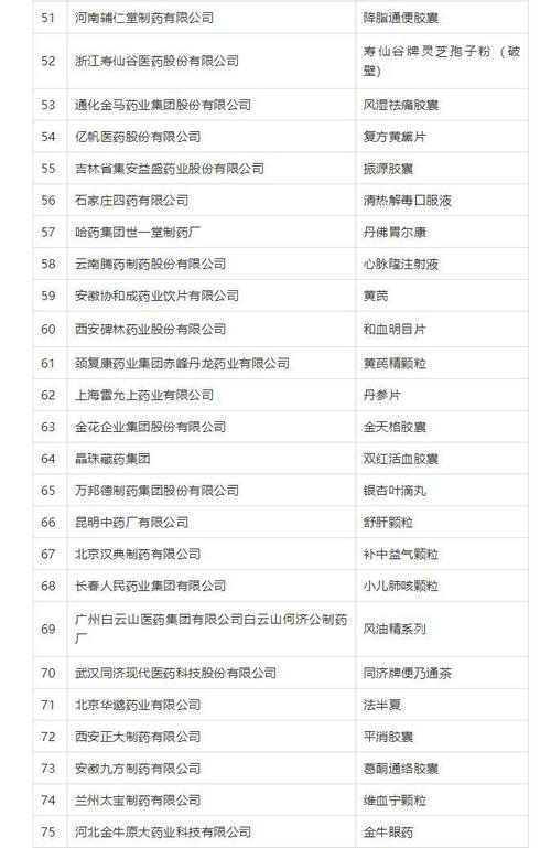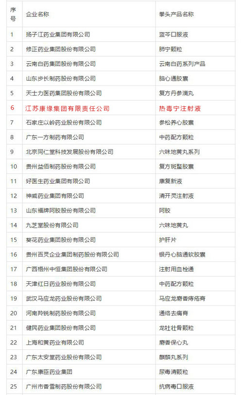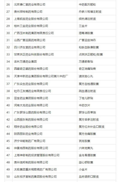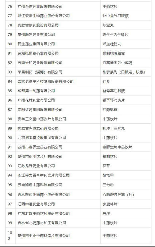 附2018年度中华民族医药百强品牌企业榜单