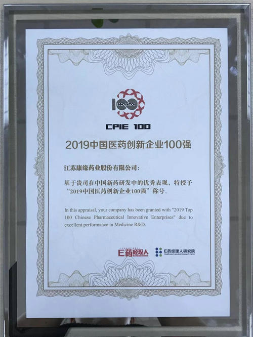 “2019中国医药创新企业100强”以授权专利数量、专利施引总量、临床试验数量和创新药获批与上市的数量四个指标为评价依据,评选出代表中国医药创新实力的企业。多年来,康缘药业以中药现代化、国际化为己任,立足自主创新。目前已累计获批中药新药证书47个,承担973计划、863计划、重大新药创制等国家科技计划40余项,拥有发明专利授权近400件,获得国家技术发明二等奖1项,国家科技进步二等奖2项,省部级科技进步奖8项。
