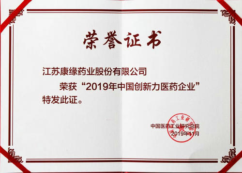 位列第四!康缘药业荣登“2019年中国创新力医药企业”榜单
