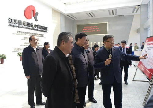 娄勤俭一行首先来到康缘现代中药研究院。肖伟就创新中药研发进行了简要汇报,指出公司坚持“创新驱动”的发展战略,研发费用投入占营销收入的比例逐步提升到10%,研发平台引领行业发展标杆,人才梯队建设不断优化,以 “三轮研发”为契机,持续推进产品的创新升级。