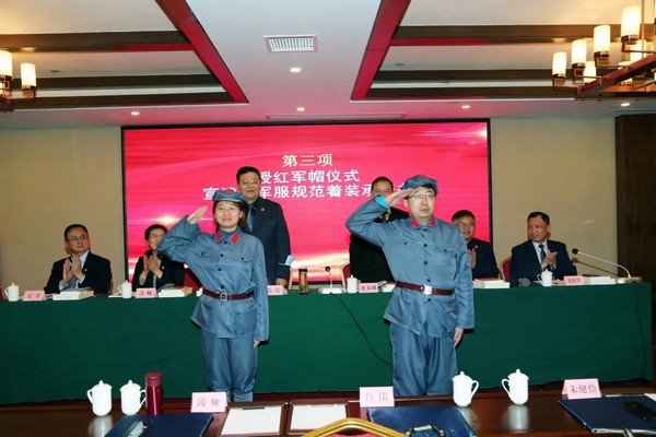 为了进一步规范学员红军着装管理,维护红色教育的严肃性和对红军的敬畏感,党委书记肖伟、培训中心主任唐苏明为学员代表授红军帽,并由学员代表宣读红军规范着装承诺书。