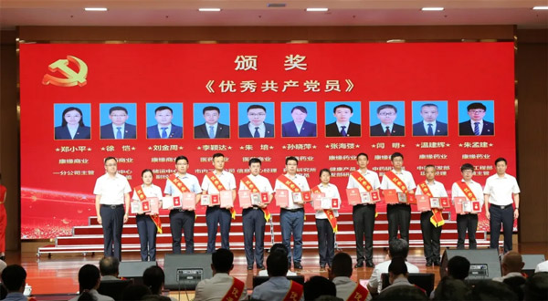 大会在庄严的国歌声中拉开帷幕。集团党委委员朱健俭宣读了《康缘集团党委关于“七一”表彰的决定》,授予陈玥等30名同志“优秀共产党员”称号,授予王团委等6名同志“优秀党务工作者”、韩英明“党务工作卓越创新奖”称号,授予集团行管支部等8个党支部“先进基层党组织”称号。大会以先进典型的榜样力量,动员全体党员干部坚定信心,奋勇争先,为新征程康缘的跨越发展开新局、立新功。