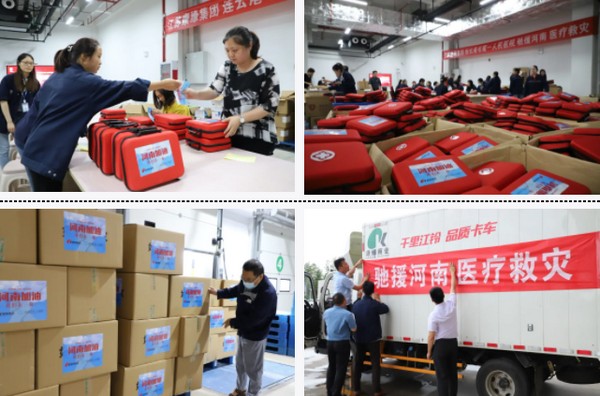 危难面前,康缘从未缺席!当获悉河南多地急需医疗急救包等物资,康缘集团积极履行民族企业的责任担当,第一时间联合市第一人民医院,进行技术研讨,精心配制了防蚊、防中暑、解毒、止痛、消炎等八类17个品种的医疗应急药品清单,近百名员工积极请战,从采购、包装到配送,连续奋战24小时,紧急赶制价值100万元的抗灾急救药包和医疗物资,并通过连云港红十字会,以现金转账方式向河南省红十字会捐赠100万元资金,驰援河南抗洪救灾工作。
