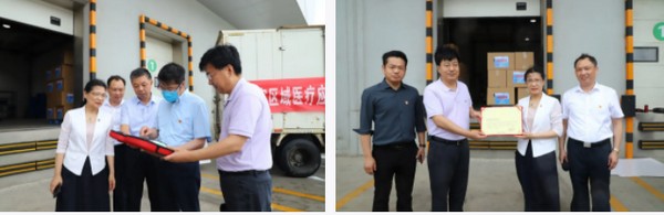 7月27日下午,在康缘商业国家级区域医疗应急物资储备调拨中心,举行康缘集团向河南灾区捐献爱心善款、物资仪式,连云港市发改委副主任马红兵、连云港市红十字会副会长何青云、连云港市第一人民医院党委书记李小民、康缘集团副董事长凌娅、康缘集团党委副书记殷世华等领导出席。