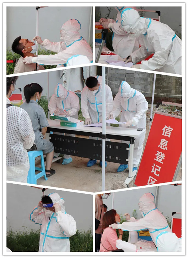 南京禄口机场疫情爆发以来,路南社区卫生服务中心服从上级部门统一指挥,统一调度,统一部署,再次担当疫情防控守护者,全面落实防控举措,加强来院人员行程码排查和体温监测,严格预检,分诊值班,切实做到早发现、早报告。同时积极配合上级疫情防控要求,对辖区内所有外地返连人员进行核酸检测。辖区有4个社区,4万多居民,流动人口较多,自7月20日以来,从每日十几个人的核酸检测人数到现在的每日上百个人,无不凝聚着中心白衣天使们的心血,她们战高温,斗酷暑,穿着密不透风的防护服,佩戴N95口罩,汗水浸透了防护服,口罩再次将美丽面庞勒出了道道血痕,甚至有的工作人员出现胸闷呕吐等中暑症状,可是所有人从来没有半句怨言,展现在人们面前的始终是充满爱心、耐心、细心的积极乐观的形象,保证核酸检测工作有序开展。
