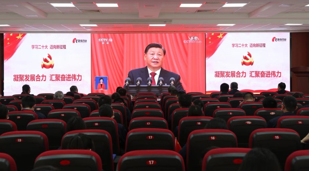 随着大会开幕,收看直播的同志们全体起立,高唱国歌。开幕会历时近2个小时,习近平同志所作报告激荡群情、催人奋进,总结了过去五年的工作和新时代十年的伟大变革,明确了新时代新征程中国共产党的使命任务,展示了党和国家未来发展的美好前景。报告彰显了决心、传递了信心、凝聚了人心,集团党员干部心潮澎湃、倍感振奋,“新时代的伟大成就就是党和人民一道拼出来、干出来、奋斗出来的!”“打江山、守江山,守的是人民的心”“人民对美好生活的向往,就是我们的奋斗目标”等,现场时时响起热烈鼓掌,特别是提到“促进中医药传承创新发展”,大家纷纷表示,要立足康缘事业、积极作为,以永不懈怠的精神状态和一往无前的奋斗姿态为康缘高质量发展、为中医药传承发展做出新的贡献。