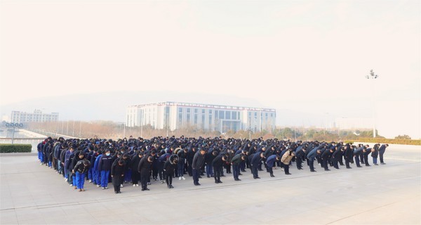 上午9时,康缘励志广场毛主席像前,全体人员整齐列队、庄严肃立,向毛主席铜像敬献花篮、鞠躬致敬,表达深切敬仰与缅怀之情。