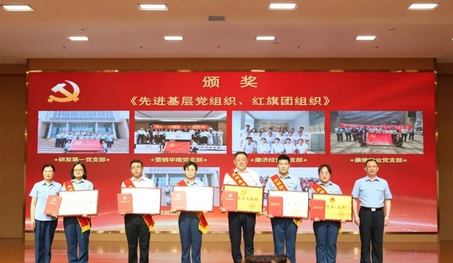 集团党委书记肖伟代表集团党委对受表彰的先进集体和优秀个人表示热烈祝贺,号召全体党员向他们学习致敬。他指出,今年是“共产党员首先是企业先进员工”提出的第30个年头,回首过往,广大党员干部积极践行这个理念,集团从一个濒临倒闭的作坊式小厂发展成为集创新中药研制、医药流通、大健康产品为一体的大型健康产业集团,中药研发实力连续多年位列首位,集团党委在2021年荣获“全国先进基层党组织”。展望未来,要坚持党建引领,聚焦中心工作,促进业务融合,瞄准“五年三百亿”目标,切实树牢“模范战斗堡垒旗帜”和“十大模范优秀党员旗帜”两面旗帜,以高质量党建赋能高质量发展。