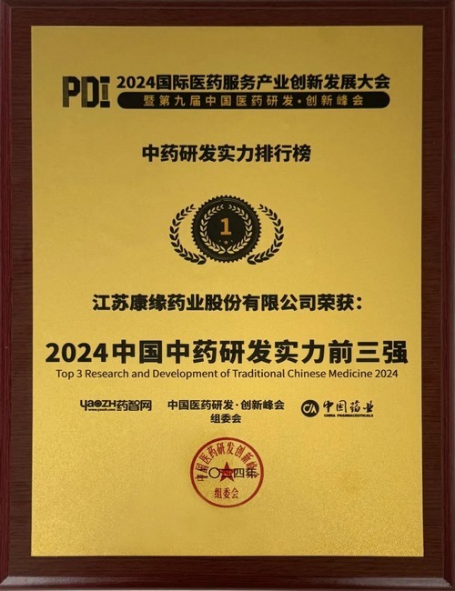 祝贺!康缘药业连膺中药研发实力全国第一!