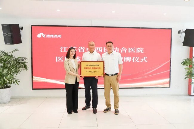 活动中,江苏省中西医结合医院与康缘集团签署医联体医疗合作协议并为康缘康复医疗中心授牌。