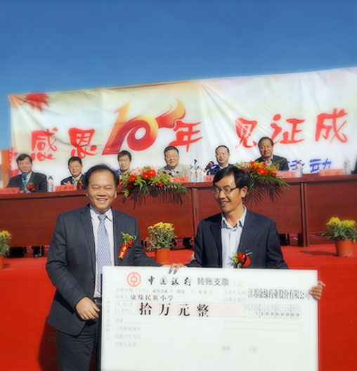 健康人类,福祉百姓,康缘集团作为一家健康产业集团,在不遗余力追求创新发展的同时,一直热心公益事业,践行公益精神,积极回报社会,锻造负责任的企业“品格”。近年来,康缘集团成立各类慈善基金,通过各种慈善组织和活动,投入近2亿元资金,投身救灾、扶贫、助学、助残、助孤、新农村建设等各类社会事业。公司相继荣获“中华慈善突出贡献奖”、“江苏省慈善之星”、“全国工商联系统抗震救灾先进单位”、“江苏省最具爱心捐赠单位”、“全国五一劳动奖章”、“江苏省劳动关系和谐企业”等荣誉。